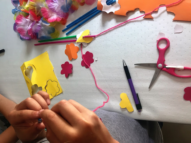 Potrzebujemy: słomki, kolorowy papier, sznurek, nożyczki, czyli jak widzicie są to elementy, które mamy w domu.